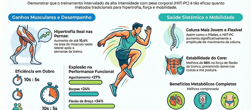 • Gonçalves, S. F., et al. (2025). Eight-Week Pilates or Whole-Body High-Intensity Interval Training Program Improves Spinal Range of Motion During the Gait Cycle in Sedentary Women. O estudo associa o HIIT de corpo todo à melhoria da mobilidade da coluna e saúde postural.