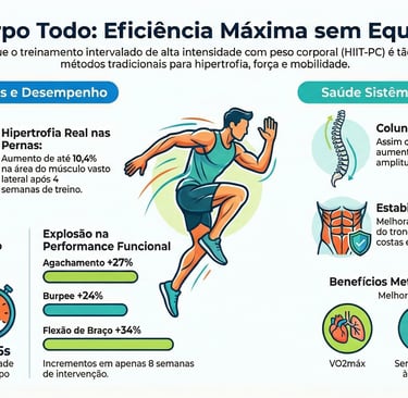 • Scoubeau, C., et al. (2022). Effectiveness of Whole-Body High-Intensity Interval Training on Health-Related Fitness: A Systematic Review and Meta-Analysis. Uma metanálise que confirma a eficácia do WB-HIIT na melhora da composição corporal de forma comparável ao cardio tradicional.